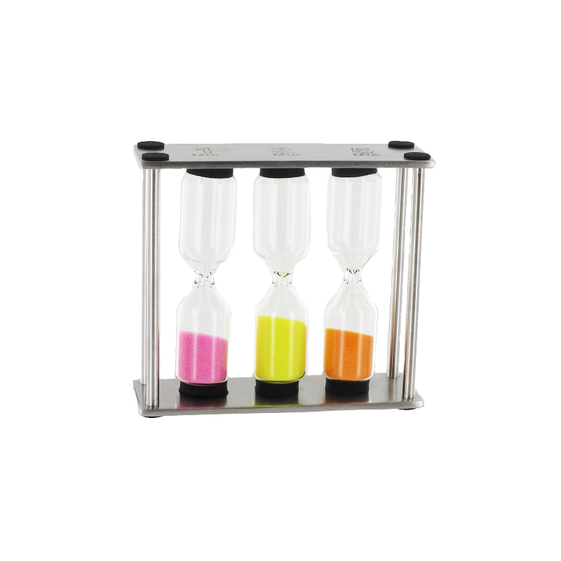 Référence 1161 Une finition acier de grande qualité pour ce sablier 3 temps, verre et inox....