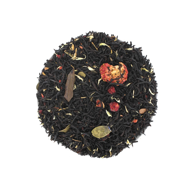 Référence 5034 Un thé noir et des fruits....cranberry, morceaux de fraise, groseille et framboise, cassis, hibiscus,...