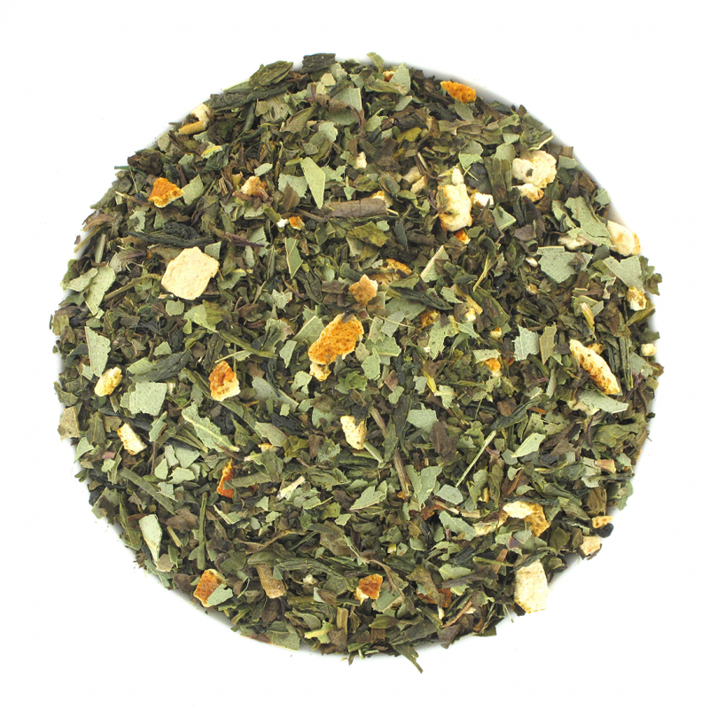 Référence 7840 Thé vert parfumé avec des écorces de citron et d'orange. Frais en bouche. A...