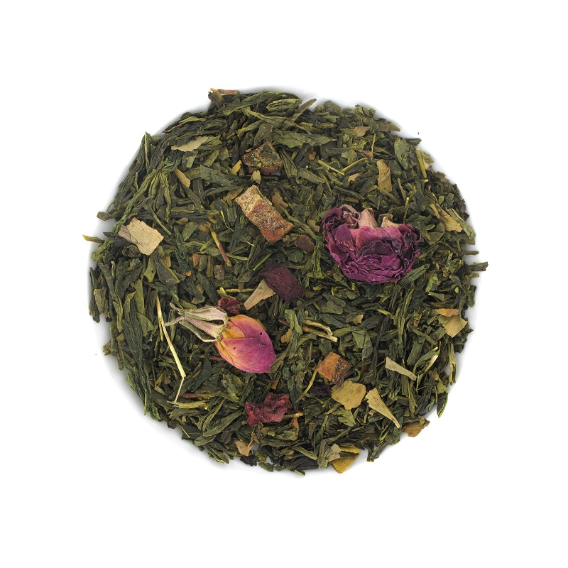 Référence 4054 Thé vert fin et élégant parsemé de boutons de roses entiers. La poire se...