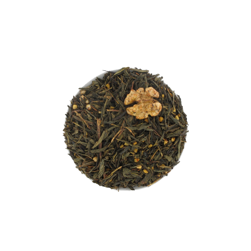 Référence 3894 Un thé vert gourmand biscuit et noix, caramel et sésame. Dépaysement garanti pour cette...