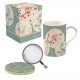 Mug avec couvercle en porcelaine et filtre en inox. Présenté dans un coffret. Contenance 35cl.