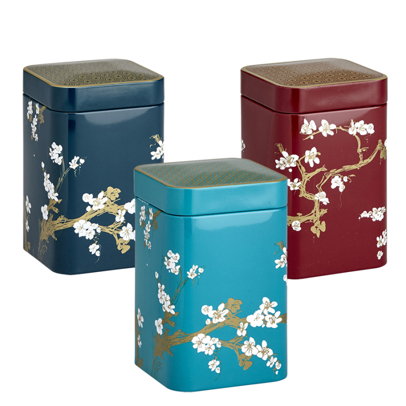 Lot de 3 boites métal carrées couleurs rouge, vert, turquoise pour une bonne conservation des arômes de votre thé.