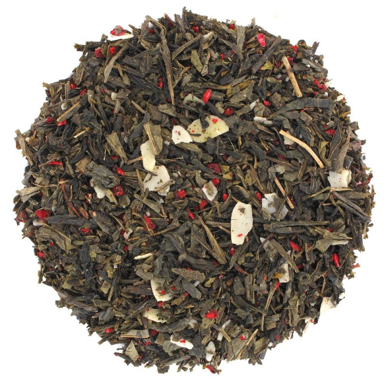 - Composition : Thé vert Sencha, AMANDE effilée, morceaux de framboise, pétales de grenade, arômes.