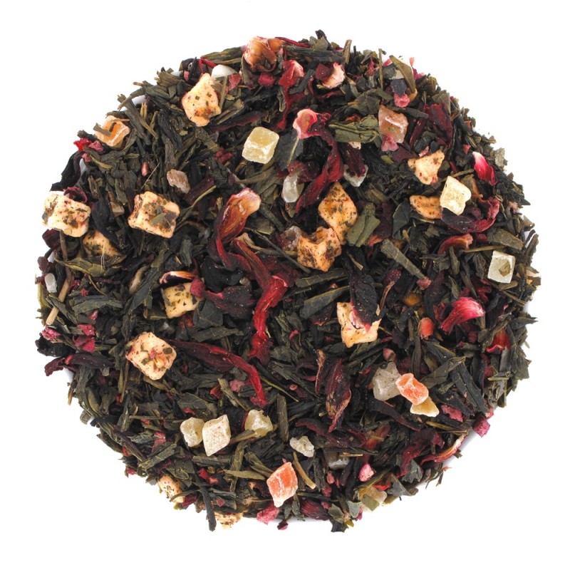 - Composition : Thé vert, morceaux de papaye, fleurs d'hibiscus, morceaux de pomme blanche, morceaux de cranberry, arômes.