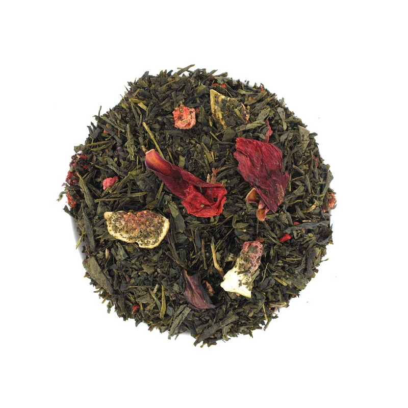 - Composition : Thé vert sencha, arôme, mûres entieres lyophilisées, framboises entieres lyophilisées, morceaux de fraise lyophilisés, tranches de figues, pétales de pivoine