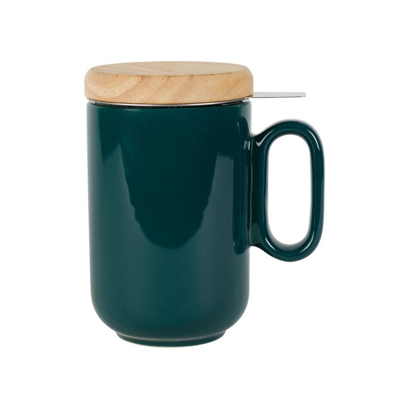 Mug spécial infusion individuelle avec filtre en inox intégré et couvercle en bambou. Il vous permet de maintenir votre boisson au chaud plus longtemps et apporte un beau design.